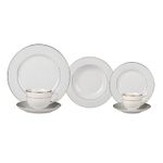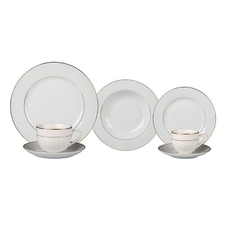 Indispensável para refeições do dia a dia com muito mais design. Esse item irá se destacar marcando estilo e personalidade na composição de sua mesa posta. Para limpeza, utilize esponja macia e sabão, não use produtos abrasivos. Composição: 06 Pratos Rasos 06 Pratos Fundos 06 Pratos de Sobremesa 06 Xícaras de Café 06 Pires de Café 06 Xícaras de Chá 06 Pires de Chá Material: Porcelana