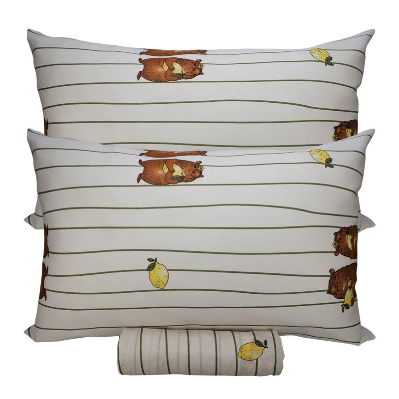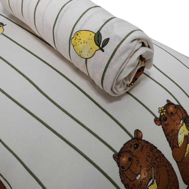 Jogo de Lençol Casal KazzaVip Malha Misto 70% Algodão e 30% Poliéster Estampado com Elástico 3 Peças Capivara Bege