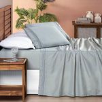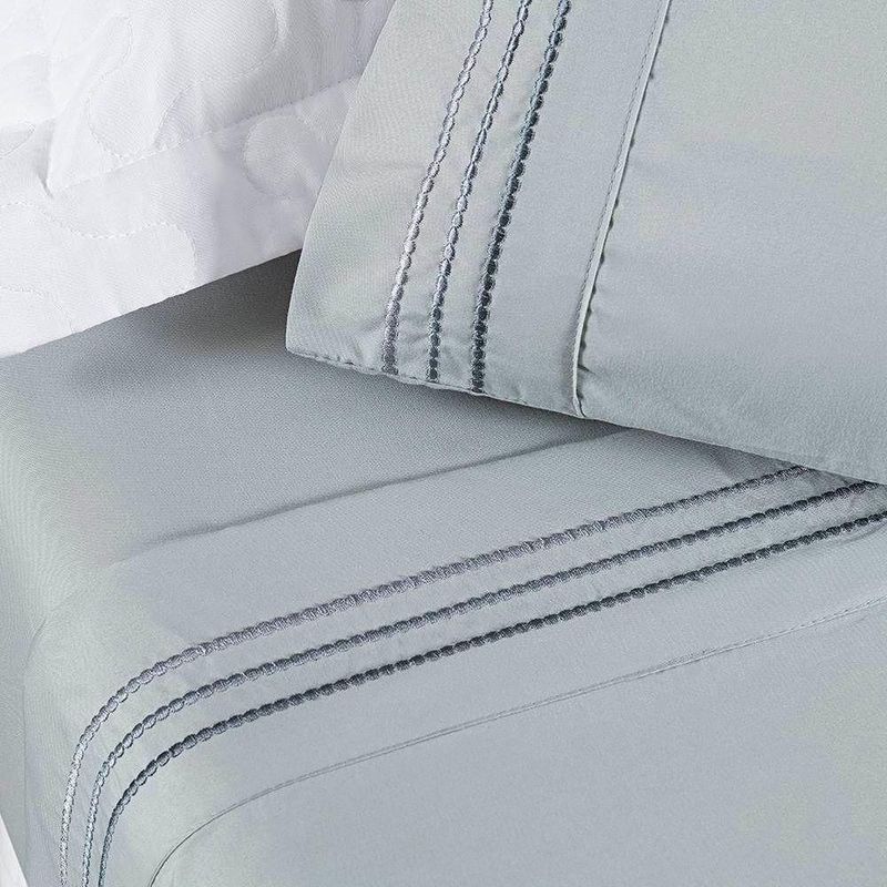 Jogo De Lençol Casal Padrão Allegra Percal 200 Fios 4 Peças - Cinza GeadaConteúdo Embalagem:01 - Lençol de Cima com Detalhe Bordado 2,60m x 2,20m01 - Lençol de Baixo com Elástico para colchão de 1,88m x 1,38m x 30cm alt.02 ;- Fronhas com Detalhe Bordado 70cm x 50cmComposição:Tecido Percal 200 Fios: 100% PoliésterImagens Ilustrativas. Apenas itens descritos acima, compõem o produto. Demais itens, podem ser adquiridos separadamente.Atenção: Certifique-se que as medidas do produto atende as dimensões da cama a qual será utilizado. ;