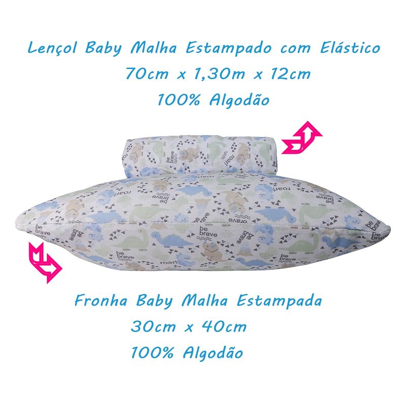 A montagem do enxoval de bebê é um dos momentos mais gostosos que acompanham a chegada de um novo pequeno na família. Porém, a seleção dos produtos perfeitos para as crianças pode gerar algumas dúvidas, A pele dos bebês é muito mais sensível e delicada do que a dos adultos. Por isso, a atenção com a escolha do tecido no lençol para berço deve ser ainda maior, e por isso esse produto 100% algodão é a melhor escolha! PortallarJogo de Lençol KazzaVip Baby Malha 100% Algodão Berço Americano Estampado Baby Roar Com Elástico 2 Peças VerdeTodas as informações divulgadas são de responsabilidade do fabricante/fornecedor.Marca: PortallarClassificação: Berço AmericanoTecido: MalhaComposição (Fios): 100% AlgodãoConteúdo e Medidas: Jogo de Lençol Malha Berço Americano - Baby Roar - 02 Peças01 - Lençol Malha Baby Estampado c/ Elástico (70cm x 130cm x 12cm)01 - Fronha Malha Estampada (30cm x 40cm)Coleção / Sortimento: Linha Baby CasaProduto Licenciado por PortallarEstampado: SimCor: VerdeFabricante: PortallarReferencia: 0310510Codigo de Barra: 7908658832468Garantia(Fabricante): Contra Defeito de FabricaçãoImagens Meramente IlustrativasINFORMAÇÕES IMPORTANTES: Item composto apenas por 01 Lençol 01 Fronha, os demais itens são meramente decorativos e NÃO fazem parte do conteúdo da embalagem.Aviso : - Todas as medidas são valores aproximados e podem sofrer alguma variação.- As cores podem sofrer uma pequena variação, dependendo do lote do produto e das configurações do seu computador.