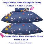 Jogo de Lençol KazzaVip Casal Malha Mista 70% Algodão e 30% Poliéster Estampado Disney Minnie Cupido Kids 3 Peças Azul