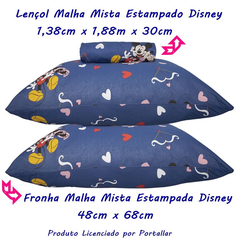 Cama, Mesa e BanhoCamaLençol e FronhaLençolJogo de Lençol KazzaVip Casal Malha Mista 70% Algodão e 30% Poliéster Estampado Disney Minnie Cupido Kids 3 Peças Azul