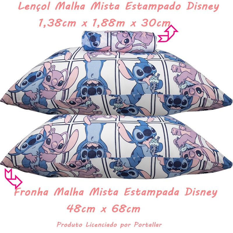 Transforme o quarto em um lugar ainda mais divertido e aconchegante com o Jogo de Cama Disney da Portallar.Com estampa exclusiva com os personagem da Disney, ele é ideal para quem ama conforto com um toque de magia Disney.Jogo de Lençol KazzaVip Casal Malha Mista 70% Algodão e 30% Poliéster Estampado Disney Stitch Quadros Kids 3 Peças LilasTodas as informações divulgadas são de responsabilidade do fabricante/fornecedor.Marca: PortallarClassificação: CasalTecido: Malha MistaComposição (Fios): 70% Algodão / 30% PoliésterConteúdo e Medidas: Jogo de Cama Malha Mista Estampado - Stitch Quadros - 03 Peças01 Lençol Malha Misto Estampado Com Elástico (1,38m x 1,88m x 30cm)02 Fronha Malha Mista Estampada (48cm x 68cm) (Para travesseiro até 50cm x 70cm) Coleção / Sortimento: Linha Disney KidsProduto Licenciado por PortallarEstampado: SimCor: LilasFabricante: PortallarReferencia: 0310506Código de Barras: 7908658832390Garantia(Fabricante): Contra Defeito de FabricaçãoImagens Meramente IlustrativasINFORMAÇÕES IMPORTANTES: Item composto apenas por 01 Lençol + 02 Fronha, os demais itens são meramente decorativos e NÃO fazem parte do conteúdo da embalagem.Aviso : - Todas as medidas são valores aproximados e podem sofrer alguma variação.- As cores podem sofrer uma pequena variação, dependendo do lote do produto e das configurações do seu computador