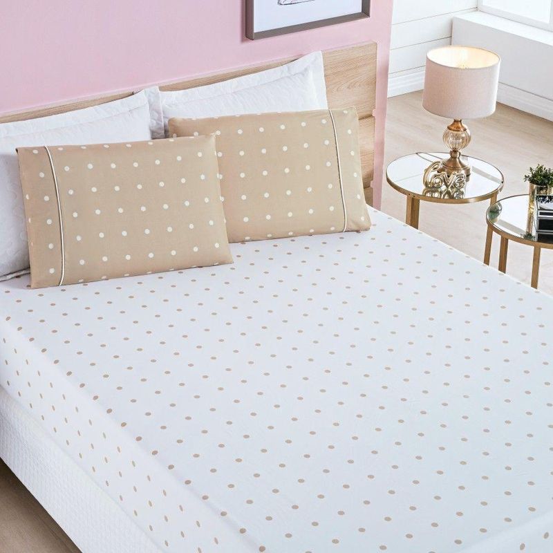 Jogo De Lençol King Petit Poa 200 Fios 3 Peças - CaquiA coleção Petit Poá aposta no clássico, no simples. Uma coleção romântica, elegante e atual onde as bolinhas são as protagonistas.Conteúdo Embalagem:01 - Lençol de Baixo Estampado com Elástico para Colchão de 2,03m x 1,93m x 30cm alt.02 ;- Fronhas Estampadas 70cm x 50cmComposição:Tecido Micropercal 200 Fios - 100% PoliésterImagens Ilustrativas. Apenas itens descritos acima, compõem o produto. Demais itens, podem ser adquiridos separadamente.Atenção: Certifique-se que as medidas do produto atende as dimensões da cama a qual será utilizado. ;