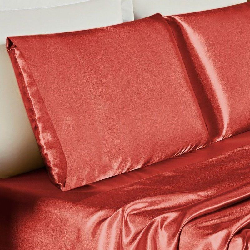 Jogo De Lençol Queen Cetim 4 Peças Romantic - TelhaConteúdo Embalagem:01 - Lençol de Cima 2,60m x 2,40m01 - Lençol de Baixo com Elástico para colchão de 1,98m x 1,58m x 30cm alt.02 ;- Fronhas 70cm x 50cmComposição:Tecido: Cetim Charmousse - 100% PoliésterImagens Ilustrativas. Apenas itens descritos acima, compõem o produto. Demais itens, podem ser adquiridos separadamente.Atenção: Certifique-se que as medidas do produto atende as dimensões da cama a qual será utilizado. ;