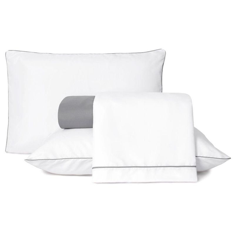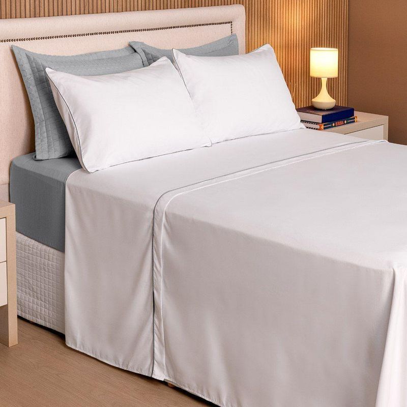 Jogo De Lençol Queen Linea Percal 200 Fios 4 Peças - CinzaO Jogo de Cama Línea é feito com ;Percal ;200 Fios 100% Poliéster, ;um tecido de grande qualidade e alta durabilidade, que possui o toque super macio e muito confortável. Além disso, o Jogo de Cama Línea é super versátil e também muito prático, pois é fácil de lavar e secar e não precisa passar!O kit conta com fronha e sobre lençol na cor branca. A fronha possui fechamento em envelope, o que facilita a retirada para lavagem. O jogo também acompanha um lençol com elástico nas 04 laterais.Conteúdo Embalagem:01 - Lençol de Cima 2,60m x 2,45m01 - Lençol de Baixo com Elástico para colchão de 1,98m x 1,58m x 35cm alt.02 ;- Fronhas 70cm x 50cmComposição:Tecido Percal 200 Fios: 100% PoliésterImagens Ilustrativas. Apenas itens descritos acima, compõem o produto. Demais itens, podem ser adquiridos separadamente.Atenção: Certifique-se que as medidas do produto atende as dimensões da cama a qual será utilizado. ;