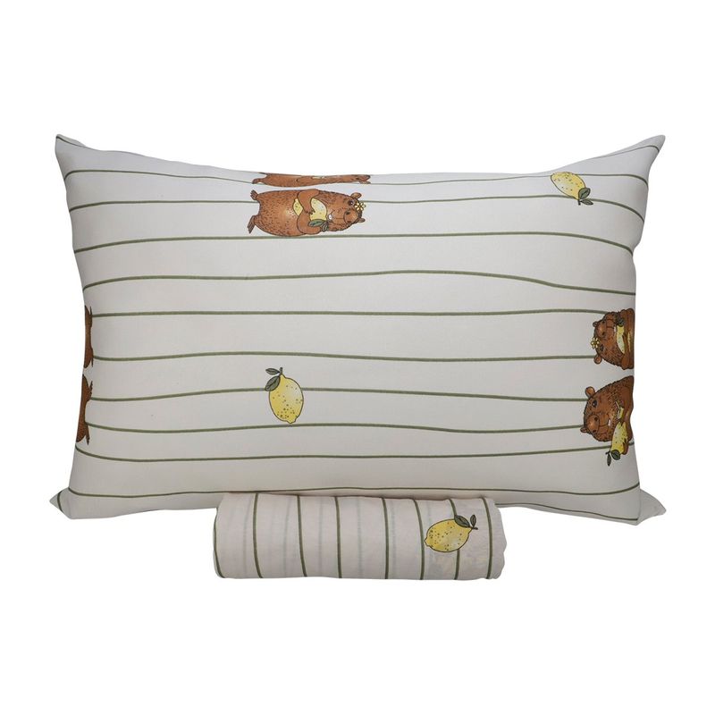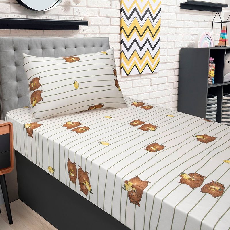 Jogo de Lençol Solteiro KazzaVip Malha Misto 70% Algodão e 30% Poliéster Estampado com Elástico 2 Peças Capivara Bege