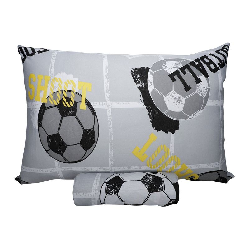 Jogo de Lençol Solteiro KazzaVip Malha Misto 70% Algodão e 30% Poliéster Estampado com Elástico 2 Peças Football Kick Cinza
