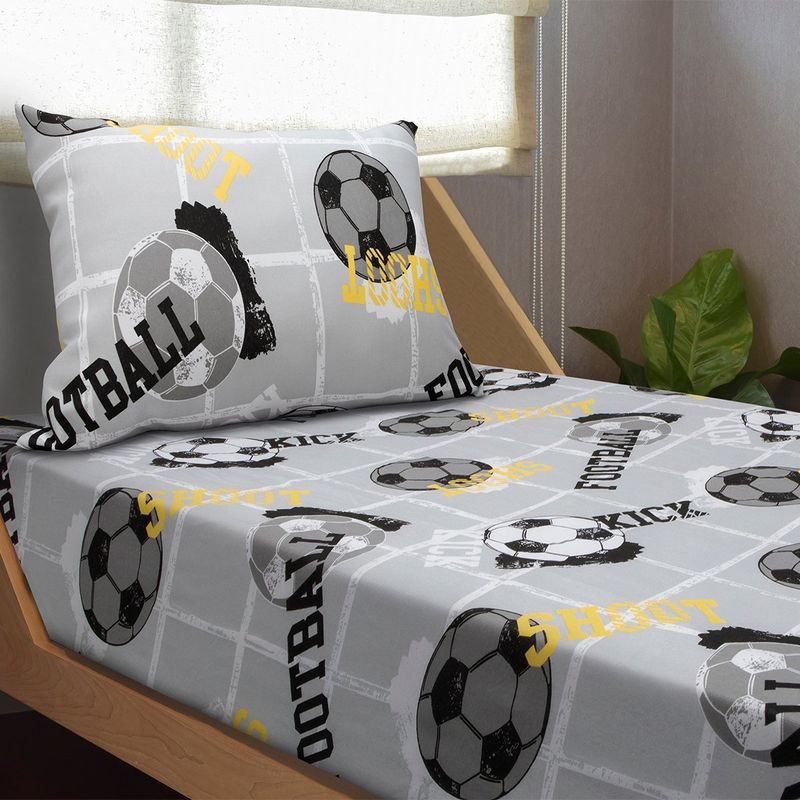 ColchõesAcessórios para CamaLençol e FronhaLençolJogo de Lençol Solteiro KazzaVip Malha Misto 70% Algodão e 30% Poliéster Estampado com Elástico 2 Peças Football Kick Cinza