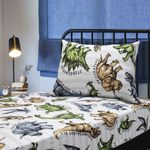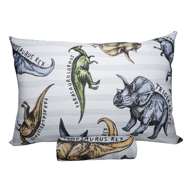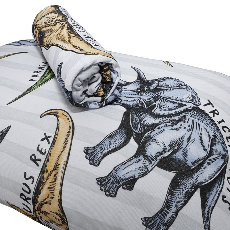 Jogo de Lençol Solteiro KazzaVip Malha Misto 70% Algodão e 30% Poliéster Estampado com Elástico 2 Peças T-Rex Cinza