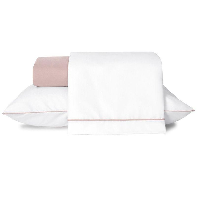 Jogo De Lençol Solteiro Linea Percal 200 Fios 3 Peças - RoseO Jogo de Cama Línea é feito com micropercal de 200 fios, um tecido de grande qualidade e alta durabilidade, que possui o toque super macio e muito confortável. Além disso, o Jogo de Cama Línea é super versátil e também muito prático, pois é fácil de lavar e secar e não precisa passar!O kit conta com fronha e sobre lençol na cor branca. A fronha possui fechamento em envelope, o que facilita a retirada para lavagem. O jogo também acompanha um lençol com elástico nas 04 laterais.Conteúdo Embalagem:01 - Lençol de Cima 2,40m x 1,50m01 - Lençol de Baixo com Elástico para colchão de 1,88m x 88cm x 30cm alt.01 - Fronha 70cm x 50cmComposição:Tecido Micropercal 200 Fios: 100% PoliésterImagens Ilustrativas. Apenas itens descritos acima, compõem o produto. Demais itens, podem ser adquiridos separadamente.Atenção: Certifique-se que as medidas do produto atende as dimensões da cama a qual será utilizado.