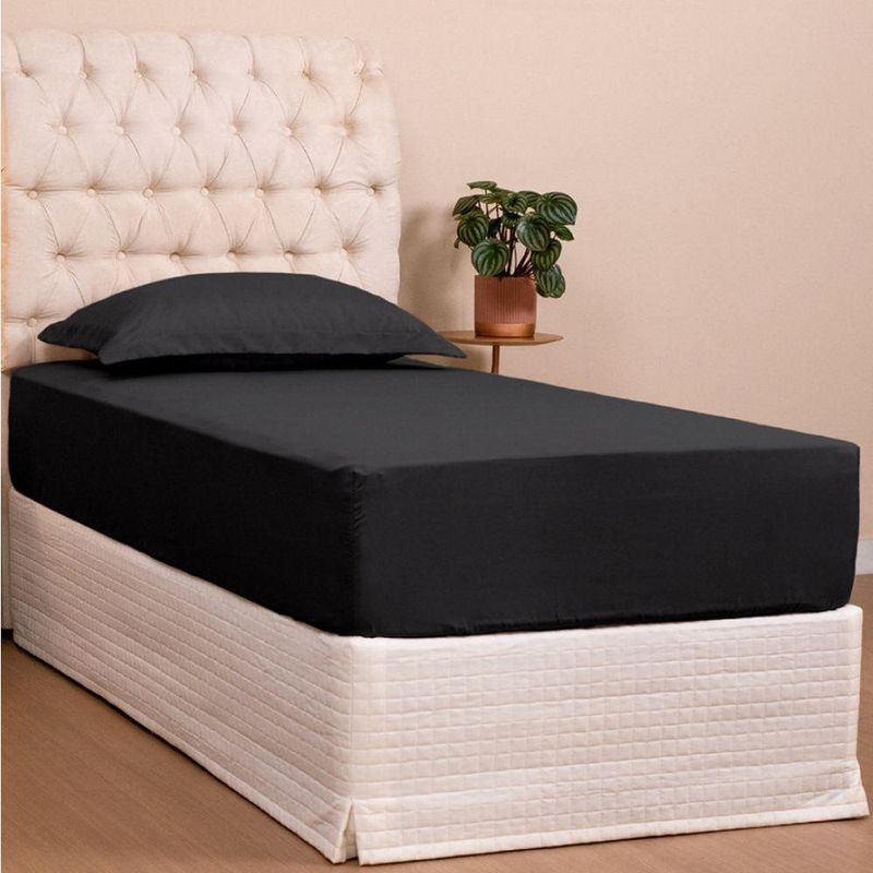 Jogo De Lençol Solteiro Slim Percal 200 Fios 2 Peças - PretoO Jogo de cama Slim é feito com Percal 200 Fios 100% Poliéster, um tecido de grande qualidade e alta durabilidade, que possui o toque super macio e muito confortável. Um jogo de cama básico, super versátil e com muita praticidade, pois é fácil de lavar e secar e não precisa passar!Conteúdo Embalagem:01 - Lençol de Baixo com Elástico para colchão de 1,88m x 88cm x 30cm alt.01 - Fronha Envelope com 03 abas 75cm x 55cmComposição:Tecido Percal 200 Fios: 100% PoliésterImagens Ilustrativas. Apenas itens descritos acima, compõem o produto. Demais itens, podem ser adquiridos separadamente.Atenção: Certifique-se que as medidas do produto atende as dimensões da cama a qual será utilizado.