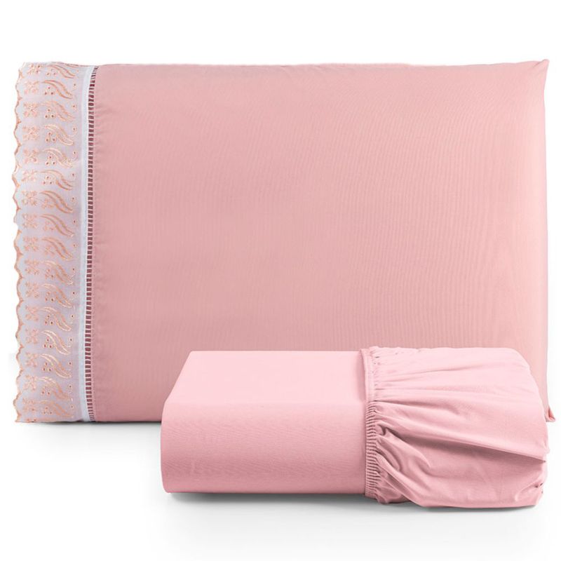Cama, Mesa e BanhoCamaLençol e FronhaLençolJogo de Lençol Suave Lese Percal 180 Fios Solteiro 2 Peças Barato - Rosê