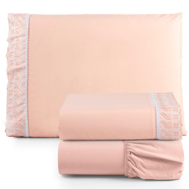 Cama, Mesa e BanhoCamaLençol e FronhaLençolJogo de Lençol Suave Lese Percal 180 Fios Solteiro 3 Peças Barato - Salmão