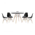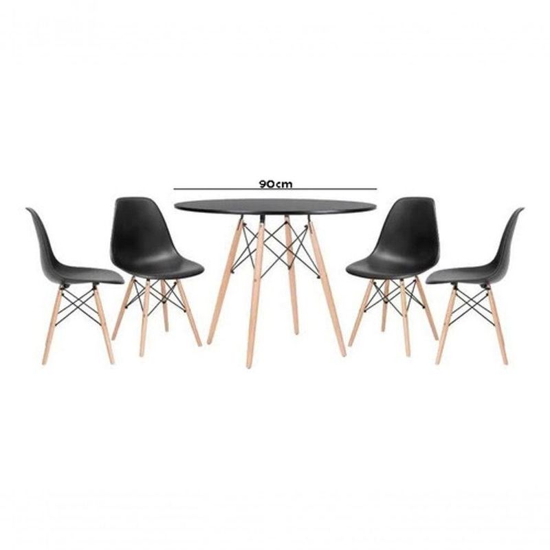 Jogo De Mesa 4 Cadeiras Pretas Eames Eiffel 90cm Base Madeira Tampo Preto NewMesa de Jantar Redonda 90cmCor: PretaDiâmetro: 90cmAltura: 75cmTampo em MDFOBS: Montagem não inclusa. Acompanha manual de instruções e chave para a montagem.4 Cadeiras Eiffel Charles Eames DKR PretasAltura Total: 84,00 (cm)Altura do Assento: 45,00 (cm)Largura: 44,00 (cm)Profundidade: 43,00 (cm)Material da Estrutura: Madeira e MetalMaterial do Assento: PolipropilenoPeso Aproximado: 3.90 (Kg)Resistência: Aconselhável até 120 (Kgs)