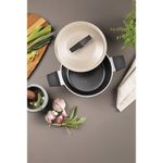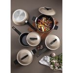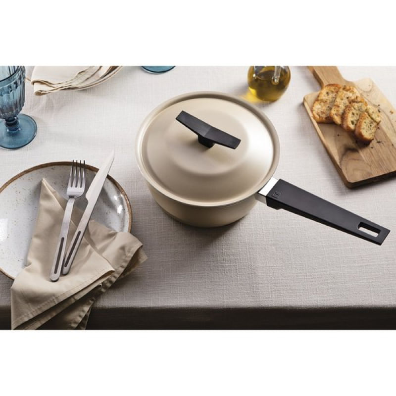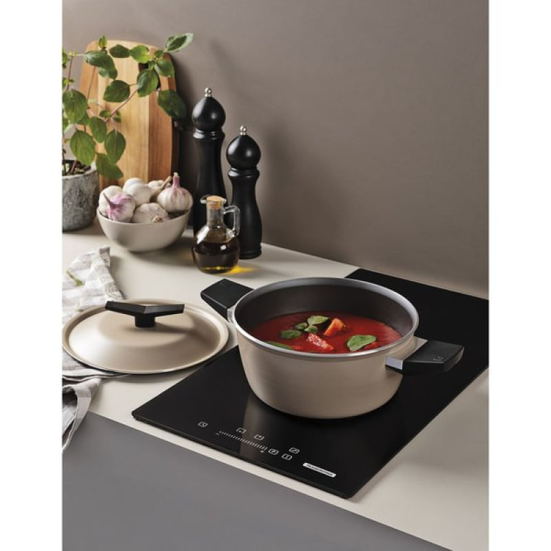 Jogo de Panelas Tramontina Spezia Induction Antiaderente Starflon Excellent Areia 5 Peças Tramontina - Tenha uma experiência culinária completa com o jogo de panelas Tramontina Spezia Induction em alumínio com revestimento interno e externo em antiaderente Starflon Excellent areia 5 peças. Corpo em alumínio com espessura de 3 milimetros com antiaderente Starflon Excelente garante que os alimentos não grudem e facilita o cozimento uniforme. Equipadas com tampas de vidro temperadas e cabos de baquelite, as panelas oferecem segurança e conforto. Compatível com fogões a gás, elétricos, vitrocerâmicos e de indução. Características Gerais do Produto: Garantia: • 3 Meses