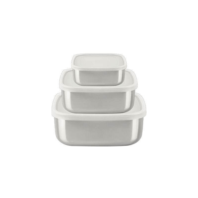 Servir bem é um verdadeiro presente para o dia a dia. O Jogo de Potes Tramontina Quadrados em Aço Inox com Tampa Plástica 3 Peças, da linha Freezinox, garante beleza e sofisticação para servir bem diariamente. Os potes são produzidos em aço inoxidável, altamente durável, mantém as características originais, preservando a beleza, a higiene e a durabilidade do material. Seu desenho limpo e sem cantos torna a limpeza muito mais fácil. Com acabamento fosco, a tampa possui vedação perfeita para a boa conservação dos alimentos. Ideal para preparar e armazenar os alimentos, podem ir à geladeira ou ao freezer. Podem ser lavados diariamente na máquina de lavar louças. Lindos e super práticos.
