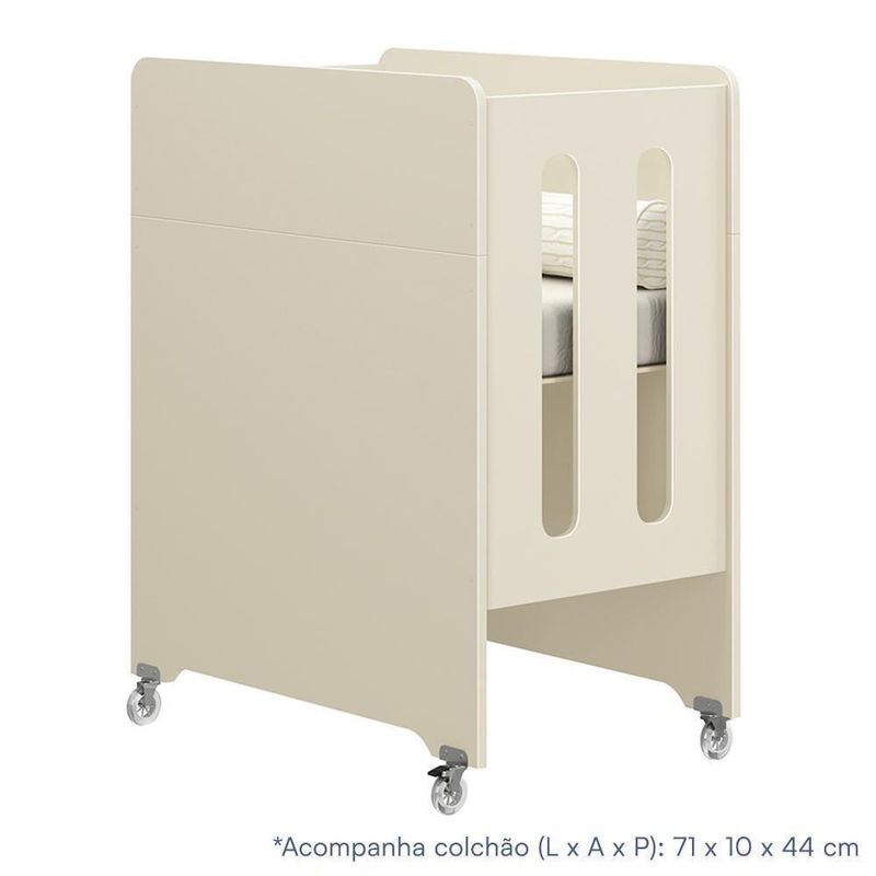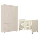 Jogo De Quarto Infantil Guarda Roupa Zaki E Berço Evolution Areia Fosco - Reller Móveis Areia Fosco Jogo de Quarto Infantil Guarda Roupa Zaki e Berço Evolution - Reller Móveis Um conjunto funcional e elegante, pensado para oferecer praticidade, conforto e segurança no quarto do bebê. O Guarda Roupa Infantil Zaki conta com 4 portas e 3 gavetas amplas, estrutura em MDF com pintura UV atóxica, corrediças telescópicas e puxadores em MDF. Possui cabideiro metálico e pés em PVC, garantindo resistência e durabilidade. O Berço Evolution 4 em 1 pode ser utilizado como mini berço, berço, sofá-cama e mini cama, acompanhando cada fase do crescimento da criança. Fabricado em MDF com pintura UV, possui 3 regulagens de altura do estrado, rodízios em gel (2 com trava e 2 sem trava) e é certificado pelo INMETRO, proporcionando praticidade e segurança.Guarda Roupa Infantil Zaki 4 Portas e 3 Gavetas - Reller Móveis - Estrutura em MDF - Pintura UV atóxica - 4 Portas - Dobradiças metálicas - 3 Gavetas - Corrediças telescópicas - Puxadores em MDF - Cabideiro metálico - Pés em PVC Berço Evolution 4 em 1 com Colchão para Mini Berço - Reller Móveis - Estrutura em MDF - Pintura UV - Certificado pelo INMETRO 5332/2021 - Padrão americano quando berço, sofá cama e mini cama - 3 Regulagens de altura do estrado - 4 em 1: mini berço, berço, sofá cama e mini cama - 4 Rodízios em gel sendo 2 com trava e 2 sem trava - Colchão recomendado para mini berço: 71 x 44 cm - Colchão recomendado berço, sofá cama e mini cama: 130 x 70 cm - Acompanha colchão para mini berço - Não acompanha colchão para berço, sofá cama e mini cama - Acompanha suporte mosquiteiro Dimensões: Tamanho do Guarda-Roupa (L x A x P): 124 x 207 x 45 cm Tamanho quando Mini Berço (L x A x P): 78 x 97 x 48 cm Tamanho do Colchão Mini Berço (L x A x P): 71 x 10 x 44 cm Tamanho quando Berço (L x A x P): 133 x 97 x 78 cm Garantia: 3 meses Montagem: O Produto vai desmontado com manual e todos acessórios. Recomendamos que a montagem seja feita por um profissional Recomendação de Limpeza: Utilize pano levemente úmido Observações: - A LOJA se responsabilizará pela entrega dos produtos até aonde as rodovias alcançam, entregas fluviais ou aéreas devem ser cotadas a parte. - As imagens são ilustrativas, não acompanham objetos de decoração. - Pode haver alguma diferença de tonalidade entre a imagem e o produto, por conta do tratamento de imagens e a calibração de cores da sua tela. - A montagem será de responsabilidade do comprador. Entregamos até a porta de entrada da residência ou até a portaria do condomínio. Não nos responsabilizamos, no ato da entrega, por subir escadas/elevadores ou transporte por guincho em apartamentos. Eventuais despesas são de responsabilidade do comprador. - Confira as dimensões do produto no momento da compra e certifique-se de que passará normalmente por supostos elevadores, portas, escadas e/ou corredores de sua residência. Para mais informações, acesse nossa Central de Atendimento. NA Cor: Areia Fosco
