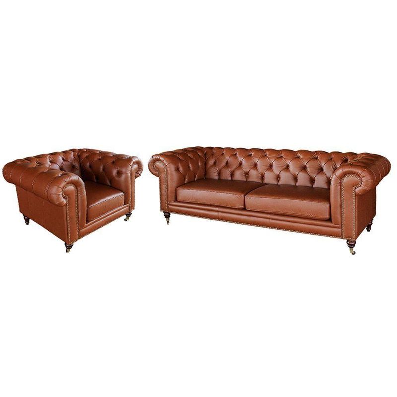 Jogo de Sofá Sala de Estar Chesterfield Duo Couro Conhaque Brilho Gran BeloA tendência do o que está fazendo o maior sucesso com seu design luxuoso e elegante. Todo mundo sabe que o sofá é um dos lugares mais gostoso onde ficamos no nosso dia a dia, e para o seu bem estar a opção ideal é o sofá chesterfield duo que além de ter um visual de atrair olhares, é um convite para descansar e relaxar, fabricado com as melhores matérias primas em madeira de eucalipto e espuma D-26 e D-33 Soft!Especificações técnicas do Sofá de 3 Lugares:- Marca: Gran Belo- Largura: 235cm- Altura: 87cm- Profundidade:95cm- Largura de cada Braço: 35cm- Altura do Encosto: 34cm- Altura dos Pés: 15cm- Largura de cada Assento: 82,5cm- Altura do Assento até o Chão: 53cmEspecificações técnicas do Sofá de 1 Lugar:- Largura: 125cm- Altura: 87cm- Profundidade: 95cm- Largura de cada Braço: 35cm- Altura do Encosto: 34cm- Altura dos Pés: 15cm- Profundidade do Assento: 53cm- Largura do Assento: 55cm- Altura do Assento até o Chão: 53cm- Estrutura: Madeira Maciça de Eucalipto- Assento: Removível, Suspensão de Percintas Elásticas e Espuma D-33 Soft com Manta de Silicone- Encosto: Fixo, Espuma D-26 Soft- Braços: Espuma D-26 Soft- Material dos Pés Traseiros: Madeira Tingida- Material dos Pés Frontal: Rodízios s/ Travas de Latão- Detalhes: Tachas Envelhecidas- Quantidade de Pés: 09- Revestimento: Couro- Cor: Conhaque- Peso Suportado: 100Kg por Assento- Peso do Produto: 120Kg- Conteúdo da Embalagem: 2 Sofás- Necessita de Montagem: Não- Garantia: 3 Meses