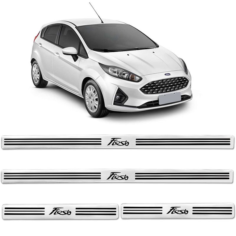 Jogo Soleira Resinada Ford Fiesta 2012 a 2019 - Branco A soleira resinada exclusiva, fixada nos pisantes do veículo, impede a danificação do mesmo devido ao fluxo de motorista e passageiros, no ato do embarque e desembarque. Além de sua importância na conservação do carro, possui uma aparência única, pelo seu visual moderno e elegante. Produto Fabricado em resina poliuretânica Branco, possui flexibilidade e cores uniformes de alta qualidade. Transmite uma proteção contra os raios Ultra Violetas. Seu ultra brilho impede que a soleira com o passar do tempo apresente um visual ressecado ou amarelado. Conta com um excelente acabamento em impressão serigráfica personalizada, além de ser produzido na medida exata e com encaixe perfeito para seu veículo. Aplicando o adesivo sobre superfície limpa e seca, garante melhor fixação do produto. Especificações Técnicas: Fixação firme Fácil aplicação Alta resistência e proteção Repele os raios U.V Dimensões e peso da embalagem: Comprimento: 17 cm Largura: 15 cm Altura:12 Peso aproximado: 350 g Tabela de Aplicação: Ford Fiesta 2012 Fiesta 2013 Fiesta 2014 Fiesta 2015 Fiesta 2016 Fiesta 2017 Fiesta 2018 Fiesta 2019 Compativel com todas as versões. Informações Adicionais: A General Car não se responsabiliza pelo uso incorreto ou instalação inadequada.