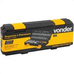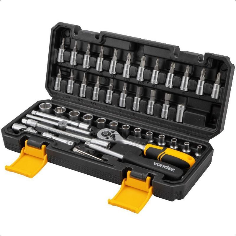 Jogo De Soquetes Sextavados Encaixe 1/4 46 Peças VonderJogo de Soquetes Vonder Sextavados Encaixe 1/4 46 Peças - Vonder OficialSe você busca qualidade, resistência e precisão, o Jogo de Soquetes Vonder Sextavados Encaixe 1/4 é a solução ideal para suas necessidades de apertar e soltar porcas e parafusos com eficácia e rapidez. Produzido em aço cromo vanádio, um material renomado por sua alta resistência e durabilidade, este jogo oferece a confiança que você precisa para lidar com tarefas exigentes no dia a dia.Com 46 peças cuidadosamente selecionadas, o jogo proporciona versatilidade e precisão para uma ampla de aplicações, seja em manutenção geral, montagem de móveis, reparos domésticos ou até mesmo em projetos mais técnicos. As peças são projetadas para atender ao encaixe 1/4, o que garante compatibilidade com a maioria das ferramentas de e doméstico. Além disso, a maleta plástica inclusa permite que você organize e facilmente suas ferramentas, mantendo tudo e ao alcance de suas mãos.O material aço cromo vanádio foi escolhido especificamente por sua resistência à corrosão e ao desgaste, proporcionando um desempenho mesmo sob condições adversas. O torque máximo da catraca de 74 assegura que você tenha a força necessária para lidar com tarefas que exigem mais potência, enquanto o peso aproximado de 1,350 kg garante um manuseio equilibrado e confortável.A combinação de peças de alta qualidade e a ampla de tamanhos e tipos de soquetes fazem deste kit uma escolha acertada para profissionais e entusiastas. A versatilidade oferecida pelas diversas opções de soquetes e bits facilita a execução de múltiplas tarefas sem a necessidade de trocar constantemente de ferramenta. O design ergonômico das peças assegura que você tenha o máximo de conforto ao usar, reduzindo a fadiga durante longas jornadas de trabalho.Especificações- Material do jogo de soquete: Aço cromo vanádio- Encaixe: 1/4- de peças do jogo de soquete: 46 peças- Capacidade: 4 mm a 14 mm- Torque máximo da catraca: 74 - Massa aproximada (peso): 1,350 kgItens inclusos- 13 soquetes sextavados de encaixe 1/4 (4 mm, 4,5 mm, 5 mm, 5,5 mm, 6 mm, 7 mm, 8 mm, 9 mm, 10 mm, 11 mm, 12 mm, 13 mm e 14 mm)- 6 soquetes hexagonais de encaixe 1/4 (3 mm, 4 mm, 5 mm, 6 mm, 7 mm e 8 mm)- 3 soquetes bits fenda encaixe 1/4 (4 mm, 5,5 mm e 6,5 mm)- 3 soquetes bits phillips encaixe 1/4 (PH1, PH2 e PH3)- 2 soquetes bits pozidrive encaixe 1/4? (PZ1 e PZ2)- 7 soquetes bits hexalobulares encaixe 1/4 (T10, T15, T20, T25, T27, T30 e T40)- 1 adaptador tipo joelho encaixe 1/4- 1 extensão ível de encaixe 1/4 (150 mm)- 1 adaptador para bits 1/4 x 1/4- 4 chaves allen (1,27 mm, 1,5 mm, 2 mm e 2,5 mm)- 1 prolongador médio de encaixe 1/4, 1 prolongador pequeno de encaixe 1/4- 1 catraca encaixe 1/4- 1 cabo T encaixe 1/4- 1 cabo adaptador quadrado de 1/4- Maleta plásticaGarantia- 3 meses com o fabricante Produto: Jogo de Soquetes Sextavados Encaixe 1/4 | Cor: Preto | Baterias necessárias: Não | Altura: 6 | Largura: 11 | Certificação de Testes Externos: Não se Aplica | Componentes Inclusos: 13 soquetes sextavados, 6 soquetes hexagonais, 3 soquetes bits fenda, 3 soquetes bits phillips, 2 soquetes bits pozidrive, 7 soquetes bits hexalobulares, 1 adaptador tipo joelho, 1 extensão ível, 1 adaptador para bits, 4 chaves allen, 1 prolongador médio, 1 prolongador pequeno, 1 catraca, 1 cabo T, 1 cabo adaptador quadrado, maleta plástica. | Fabricante: Vonder | de caixas: 1 | Tipo de fonte de energia: Não se Aplica | Certificado de conformidade do produto exigido: Não Aplicável | Contagem de unidades: 46 peças | Característica Principal 00: Encaixe de 1/4, ideal para e doméstico. | Característica Principal 01: 13 soquetes sextavados, 6 soquetes hexagonais, 3 soquetes bits fenda, 3 soquetes bits phillips, 2 soquetes bits pozidrive, 7 soquetes bits hexalobulares, 1 adaptador tipo joelho, 1 extensão ível, 1 adaptador para bits, 4 chaves allen, 1 prolongador médio, 1 prolongador pequeno, 1 catraca, 1 cabo T, 1 cabo adaptador quadrado, maleta plástica. | Característica Principal 02: Inclui 46 peças e uma maleta plástica para organização e . | Tipo de Chave: Combinada | Tamanho: 1/4
