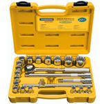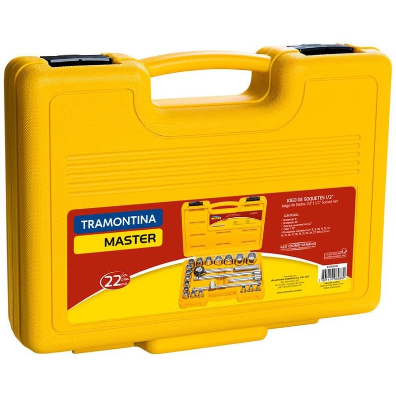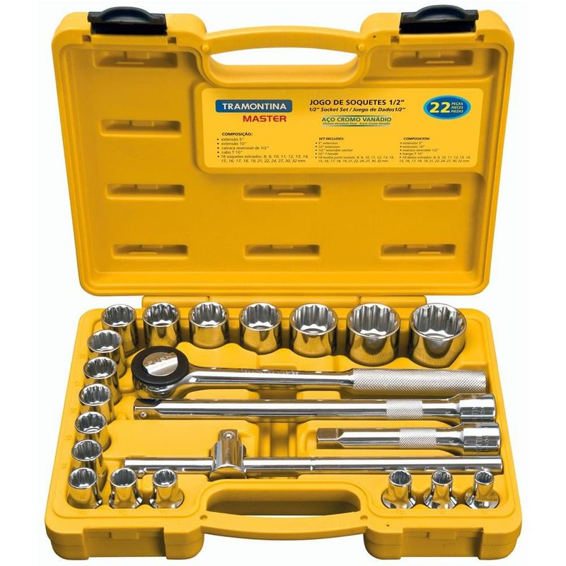 Reconhecidos no mercado por sua alta qualidade e busca constante por aperfeiçoamento. O jogo de soquetes da Tramontina é produzido em aço cromo vanádio e seu teste de dureza é realizado em vários pontos para assegurar a resistência ao desgaste da chave durante o uso ininterrupto. As aberturas das bocas das chaves de aperto são verificadas com gabaritos calibrados, o que garante seu perfeito acoplamento nos parafusos. As ferramentas são produzidas e testadas conforme normas específicas, oferecendo o melhor em segurança para o usuário.