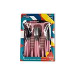 Jogo De Talheres Faqueiro Aço Inox Com Gaveteiro - RosaO nosso porta talheres de gaveta é ideal para você, um produto que alinha organização a modernidade. Além de contar com um design sofisticado de inox seus cabos são produzidos com polipropileno proporcionando maior durabilidade e controle durante o manuseio. Junto com as 24 peças de talheres que são compostos por 6 facas, 6 garfos, 6 colheres e 6 colheres de chá, o nosso jogo vem com um porta talher de gaveta que além de manter sua gaveta ou balcão organizado também é versátil ao servir como um escorredor dos talheres, um jogo completo. Suas dimensões são: Facas: Comprimento 22,2 cmGarfo: Comprimento 20,1 cmColher De Mesa: Comprimento 19,5 cmColher De Sobremesa: Comprimento 15 cm