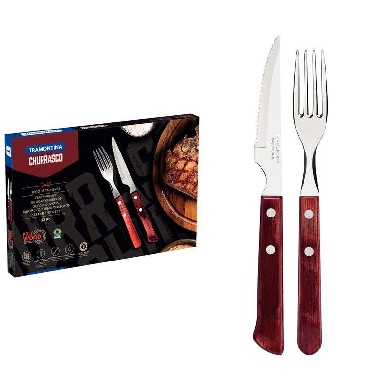 Tenha apenas o melhor na sua mesa e no seu churrasco com o Jogo de Talheres para Churrasco Tramontina em Aço Inox com Cabo Vermelho Polywood 12 Peças. Um jogo exclusivo da linha Churrasco que oferece facas e garfos produzidos com lâminas em aço inox, proporcionando alta durabilidade do fio da lâmina e evitando deformações nos talheres. O cabo de madeira tratada Polywood leva beleza e mais sofisticação para qualquer ocasião, além disso, a madeira é resistente à impactos e altas temperaturas. Uma excelente opção para quem deseja que seu churrasco seja inesquecível.