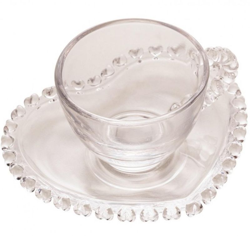 Jogo de Xícara de Café 12 Peças Cristal Coração 80 ml - Lyor Com essa Dupla a sua mesa receberá todo o charme e requinte ao servir os seus convidados. Composto por 6 Xícaras e 6 Pires em formato de coração, lapidados com corações na borda do pires e na alça da xícara. As elegantes xícaras possuem capacidade para 80ml cada. Medida aproximada da Xícara: 6,5m largura x 5cm altura Medida aproximada do Pires: 11,5x10,5cm de diâmetro, 1,5cm de altura Material: Cristal de Chumbo Cor Transparente Composição: 6 xícaras e 6 pires