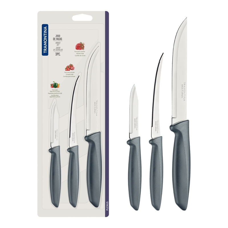 Jogo Facas Inox 3 Peças Plenus Cinza Tramontina