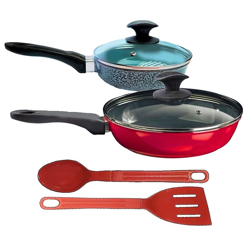 Jogo Frigideiras Antiaderente Cerâmica Javali 16e24 T03 N08 As frigideiras antiaderente é fabricada com outros materiais e ganham uma cobertura em cerâmica, garantindo assim um revestimento atóxico e antiaderente, capaz de repelir certas substâncias. Por isso, a comida não gruda nela. É resistente a altas temperaturas e a arranhões. As frigideiras em cerâmica antiaderente contam com uma camada que cobre o seu material e evita que o alimento grude em seu interior. Dessa forma, contribuem para uma culinária saudável, dispensando o uso excessivo de gordura ou óleos vegetais. Para quem gosta de um peixe ou filé de frango grelhado, ou não dispensa uma omelete deliciosa, não pode deixar de ter uma em sua cozinha. Manutenção e Dicas: 1. Não use metal na sua frigideira em cerâmica.2. Evite grandes mudanças de temperatura. (Levar uma panela quente para a água fria pode fazer com que a panela deforme.)3. Limpe suas frigideira com esponjas que não causem riscos.4. Não é ideal para máquina lava louças.5. Evite altas temperaturas de cozimento.6. Não deixe a panela vazia no fogo. Especificações Técnicas 16cm:Revestimento Interno: Antiaderente em Cerâmica cor Cinza.Revestimento Externo: Alumínio Fundido Preto Craqueado.Segue com Cabo de Baquelite e Tampa de Vidro.Litragem: 0,550ml.Largura: 16cm.Peso: 0,400g.Altura: 5cm. Especificações Técnicas 24cm:Revestimento Interno: Antiaderente em Cerâmica cor Cinza.Revestimento Externo: Alumínio Fundido Vermelho.Segue com Cabo de Baquelite e Tampa de Vidro.Litragem: 1,750ml.Largura: 24cm.Peso: 1,300Kg.Altura: 7cm. Especificações Técnicas Talheres:Modelos: Colher de Arroz e Espátula.Medidas: 28cm (Todos os modelos).Material: Nylon.Cor: Vermelho. Itens Inclusos:01 Frigideira Antiaderente Cerâmica Javali Preto Craqueado 16cm .01 Frigideira Antiaderente Cerâmica Javali Vermelho 24cm.02 Talheres em Nylon Antiaderente Vermelho. Código: 823e520eT03JAVProdutoLojaPlast.