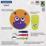 Jogo Infantil Tramontina Lirous Colorido 05 Peças TramontinaJogo Infantil Tramontina Lirous Colorido 05 Peças Tramontina -Para deixar a alimentação das crianças mais dinâmica e divertida, conte com o jogo infantil Tramontina Lirous colorido 05 peças. Seus talheres são desenvolvidos com lâminas em aço inox e cabos de polipropileno, ambas características que os deixam mais resistentes e duráveis. E ainda conta com um lindo prato e copo de pollipropileno. Todos eles contam com proteção antimicrobiana, inibem o crescimento de fungos e bactérias, deixando a refeição das crianças ainda mais segura!OrientaçõesLâminas de aço inox com bordas arredondadas que não machucam a boca da criança.Os cabos, copo e prato de polipropileno possuem maior resistência e durabilidade.Prato com borda mais alta para auxiliar a alimentação, evitando que a comida saia do prato.Produtos com proteção antimicrobiana que inibem o crescimento de fungos e bactérias, proporcionando benefícios em higiene e redução de microorganismos que causam contaminação.Podem ir a máquina de lavar louças, facitando a limpeza.Produtos Livre de BPA: O Bisfenol-A é um componente químico na produção de alguns plásticos como o Policarbonato. Este componente pode ser prejudicial à saúde e por isso a Tramontina não o utiliza em seus produtos.Características GeraisEAN137891112299498DUN1417891112299495NCM3924.10.00Peso Líquido0,2300 kg.Peso Bruto0,3350 kg.Metragem0,011718 m³.Dimensões Embalagem (Compr. X Larg. X Alt.)300x 84x 465 mm.ObservaçõesRecomenda-se o destes produtos para crianças com 36 meses ou mais.Tenha cuidado ao manusear a faca e o garfo por serem produtos cortantes e perfurantes.Antes da primeira utilização, lave bem as peças e seque-as.Estes produtos podem ir à máquina de lavar, porém não recomendamos usar produtos abrasivos como saponáceos, esponjas rígidas ou palhas de aço. Seque-os bem antes de guardar.O prato e o copo podem ser utilizados no micro-ondas para aquecimentos breves de, no máximo, 3 minutos.Para descarte dos produtos e embalagem siga as orientações de reciclagem vigentes.Atenção: Por razões de segurança e saúde do seu filho, utilizar sempre os produtos com supervisão de um adulto. Não utilize os produtos caso apresentarem dano ou defeito. Verifique sempre a temperatura do alimento antes da alimentação.Características Gerais do Produto:Garantia: - 1 Ano