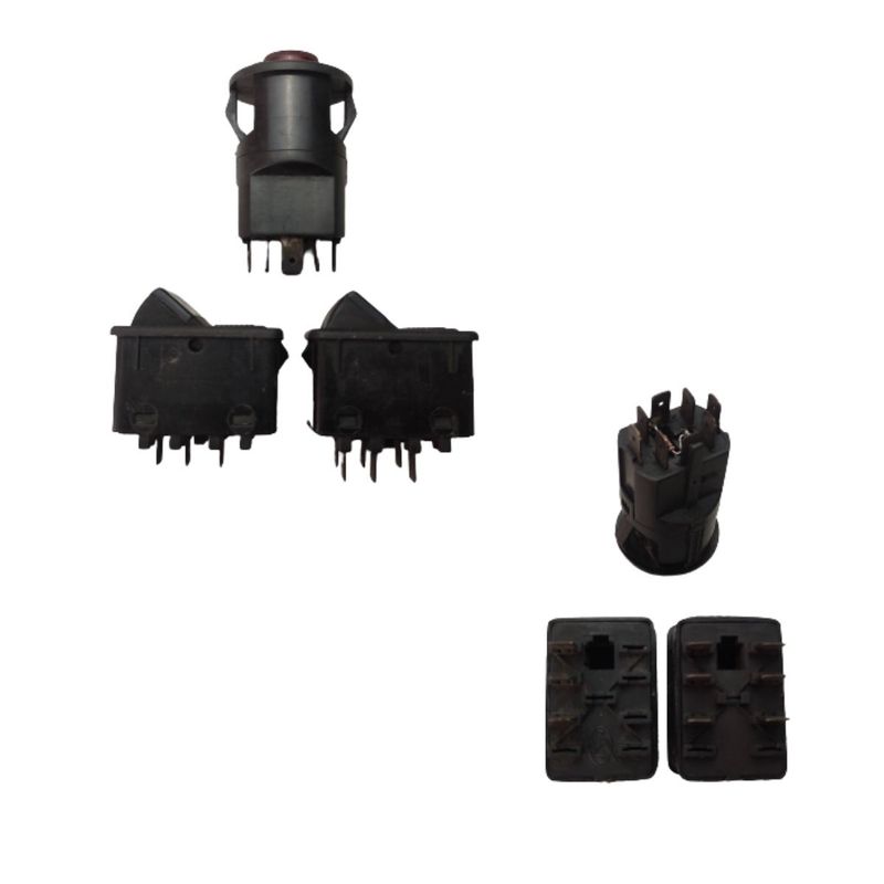 Jogo Kit Botões Interruptores Caminhões Farol Interna Alerta O kit compõe: Um interruptor de farol com dois estágios; Um interruptor para iluminação interna com um estágio; Um interruptor de alerta. Ótima qualidade maior durabilidade Encaixe perfeito Utilização: Diversos caminhões e ônibus Conteúdo da Embalagem: 3 - Interruptores Antes de efetuar seu pedido confira bem as fotos e a descrição dos produtos que deseja adquirir. Envio normalmente através dos Correios ou transportadora. Consulte preços e prazos para confirmar que seu produto chegue dentro do esperado. Tenho milhares de peças em estoque: novas, usadas, originais e paralelas de boa qualidade. Caso precise de ajuda pode me consultar. Vamos movimentar nossos carros para sempre. Bruno Misquita Peças te deseja boas compras.