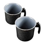 Jogo Kit Canecão Fervedor Leiteira Antiaderente Cerâmica N04 Para aquecer a água para seu café, chá ou leite não pode deixar de ter este canecão em sua cozinha, o revestimento em cerâmica oferece praticidade que facilita sua limpeza, é ideal para receitas liquidas e preparos rápidos, feito em alumínio leve, que se aquece rapidamente e mantem o calor, cabo em baquelite que não esquenta, além de super resistente e durável. Manutenção e Dicas: 1. Não use metal em seu canecão em cerâmica.2. Evite grandes mudanças de temperatura. (Levar uma panela quente para a água fria pode fazer com que deforme.)3. Limpe seus canecões com esponjas que não causem riscos.4. Não é ideal para máquina lava louças.5. Evite altas temperaturas de cozimento.6. Não deixe o canecão vazio no fogo. Especificações Técnicas:Revestimento Interno: Antiaderente em Cerâmica cor Cinza.Revestimento Externo: Alumínio Fundido Preto Craqueado.Cabo de Baquelite.Litragem: 1,700ml.Diâmetro: 14cm. Altura: 13cm.Peso: 400g. Especificações Técnicas:Revestimento Interno: Antiaderente em Cerâmica cor Cinza.Revestimento Externo: Alumínio Fundido Preto Craqueado.Cabo de Baquelite.Litragem: 2,700ml.Diâmetro: 16cm. Altura: 14cm.Peso: 450g. Itens Inclusos:01 Canecão Fervedor Preto Craqueado Antiaderente Cerâmica 14cm.01 Canecão Fervedor Preto Craqueado Antiaderente Cerâmica 16cm. Código: 1921e1923JAV ProdutoLojaPlast.