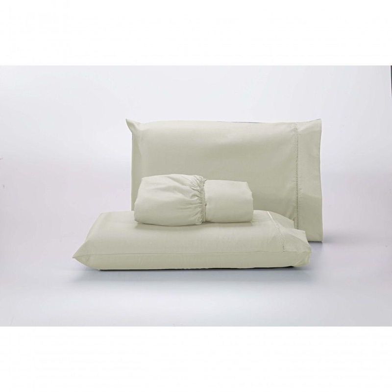 Jogo Lençol 400 Fios Ponto Palito Cama Queen 3pçs Poliéster - PalhaO Jogo de Lençol 400 fios é produzido com tecido de POLIÉSTER Acetinado, o que torna seu preço acessível sem perder a qualidade de um tecido mais resistente e bonito! Acompanha lençol com elástico e duas fronhas com acabamento em ponto palito para dar mais charme à peça.Produto composto por:2 fronhas com ponto palito Tamanho: 0,50m x 70cm1 Lençol de baixo para colchão de 1,58m x 1,98m até 30cm de alturaComposição:100% poliéster 400 fios acetinadoGramatura 130
