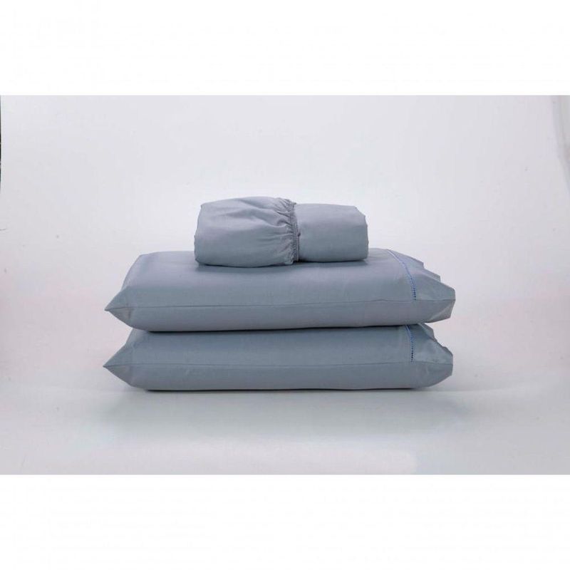 Jogo Lençol 400 Fios Ponto Palito Cama Solteiro 2pçs Poliéster - CinzaO Jogo de Lençol 400 fios é produzido com tecido de POLIÉSTER Acetinado, o que torna seu preço acessível sem perder a qualidade de um tecido mais resistente e bonito! Acompanha lençol com elástico e uma fronha com acabamento em ponto palito para dar mais charme à peça.Produto composto por:1 fronha com ponto palito Tamanho: 0,50m x 70cm1 Lençol de baixo para colchão de 0,88m x 1,88m até 30cm de alturaComposição:100% poliéster 400 fios acetinadoGramatura 130