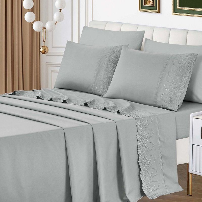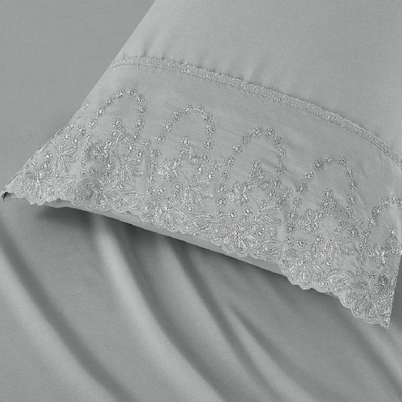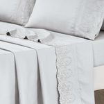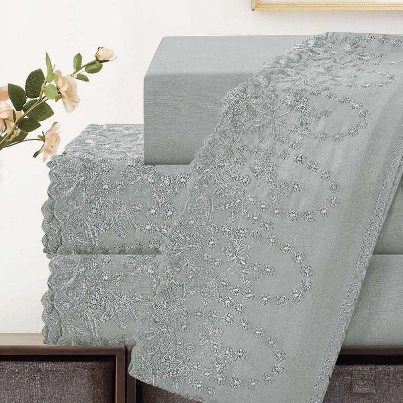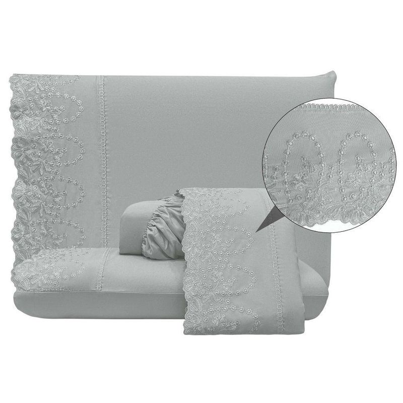 Jogo Lençol Casal Jade Bordado Inglês 4pç 100% Poliéster - CinzaO Jogo de lençol para cama Casal Padrão com 04 peças confeccionado em tecido Percal 300 fios, detalhes em bordado inglês na fronha e no lençol de cima. Possui alto padrão de qualidade, proporciona conforto e sofisticação.Contém na embalagem:01 Lençol superior Comp (2,50m) x Larg (2,25m)01 Lençol de baixo com elástico (2,50m) x (2,25m) para colchão de (1,88m)x(1,38cm)x(30cm)02 Fronhas Comp (70cm) x Larg (50cm)*Observações: Considere as medidas e formatos especificados na descrição do produto.* DECORAÇÃO LUXUOSA DE ALTO PADRÃOComposição: 100% Poliéster*As fotos são meramente ilustrativas.*As cores podem variar de acordo com cada monitor e não representam todas as peças que compõem a descrição do produto.*Fique atento à descrição do produto.
