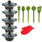 Jogo Panelas Preto Liso Cerâmica Talher Javali AAL 16A24Cm A panela antiaderente é fabricada com outros materiais e ganham uma cobertura em cerâmica, garantindo assim um revestimento atóxico e antiaderente, capaz de repelir certas substâncias. Por isso, a comida não gruda nela. É resistente a altas temperaturas e a arranhões. As panelas em cerâmica antiaderente contam com uma camada que cobre o seu material e evita que o alimento grude em seu interior. Dessa forma, contribuem para uma culinária saudável, dispensando o uso excessivo de gordura ou óleos vegetais. Para quem gosta de um peixe ou filé de frango grelhado, ou não dispensa um omelete delicioso, não pode deixar de ter uma em sua cozinha. Manutenção e Dicas: 1. Não use metal na sua panela de cerâmica. 2. Evite grandes mudanças de temperatura. (Levar uma panela quente para a água fria pode fazer com que a panela deforme.) 3. Limpe suas panelas com esponjas que não causem riscos. 4. Não é ideal para máquina lava louças. 5. Evite altas temperaturas de cozimento. 6. Não deixe a panela vazia no fogo. Especificações Técnicas 16 a 24cm: Revistimento Interno: Antiaderente em Cerâmica cor Cinza. Revestimento Externo: Alumínio Fundido Preto Liso. Alça Alumínio Tampa de Vidro. Medidas Caçarolas: 16cm / 0,800Kg / Altura: 9cm / Litragem: 1,2L. 18cm / 1Kg / Altura: 10cm / Litragem: 1,7L. 20cm / 1,15Kg / Altura: 9cm / Litragem: 2,3L. 22cm / 1,50Kg / Altura: 9,5cm / Litragem: 2,9L. 24cm / 1,55Kg / Altura: 10cm / Litragem: 3,6L. Especificações Técnicas Talheres: Modelos: Macarrão, Arroz, Concha Feijão, Escumadeira e Espátula. Medidas: 28cm (Todos os modelos) Material: Nylon. Cor: Verde. Itens Inclusos: 01 Jogo Panela Preto Liso Antiaderente Cerâmica Javali AA1 16 a 24cm. 01 Jogo de Tampas de Vidro 16 a 24cm + Batoque. 05 Talheres em Nylon Antiaderente Verde. 01 Luvas Térmica em Pano Reforçado. Código: 0016A24PLC.AA1VERD-JAV ProdutoLojaPlast.