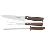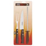 Item exclusivo da Tramontina, o Jogo para Churrasco Tramontina é composto por todos os utensílios indispensáveis a um bom churrasqueiro!O garfo e faca são confeccionados em aço inox com cabos de madeira ipê. Possuem espessura que proporciona maior resistência, evitando deformações e lâmina com tratamento térmico para assegurar o corte por um longo período.Além disso, acompanha chaira com estrias uniformes, perfeitas para a manutenção do fio das facas, revestimento da haste de cromo-duro, para maior durabilidade contra corrosão e cabo de polipropileno que garante maior segurança no manuseio.