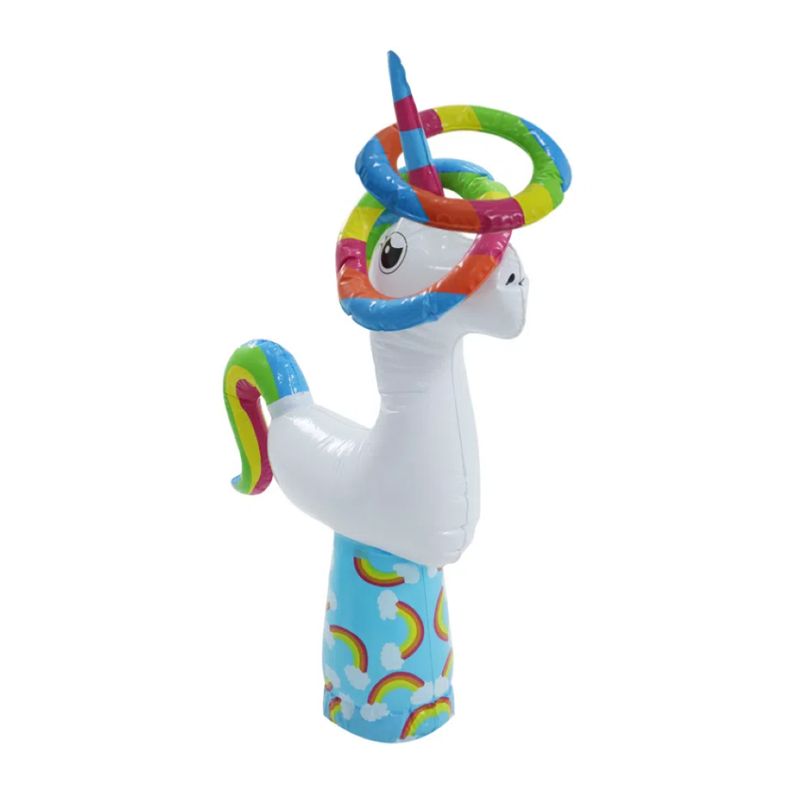 Jogo para piscinas a sensação do verão!· Colorido, descolado e em formato divertido· Material resistente, confeccionada em premium vinyl raft· Ideal para aproveitar, curtir e se divertir na piscina!Especificações Técnicas EstruturaPremium Vinyl Raft CorBranco ModeloJogo para piscina Dimensões aproximadas montado (C x L x A)Unicórnio: 85 cm x 62 cm, Argolas: 23 cm x 4 cm Garantia3 Meses