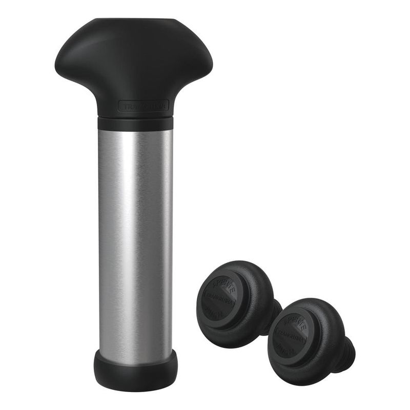 O Jogo para Vinhos Tramontina Harmoniza vai te dar tudo que você precisa. Ele veda totalmente a garrafa com a Bomba de Vácuo de aço inox e ABS, pois ela elimina o ar do interior da garrafa, conservando, assim, as propriedades do vinho por mais tempo e ainda acompanha duas tampas em ABS emborrachado. O jogo perfeito para você e seus convidados.