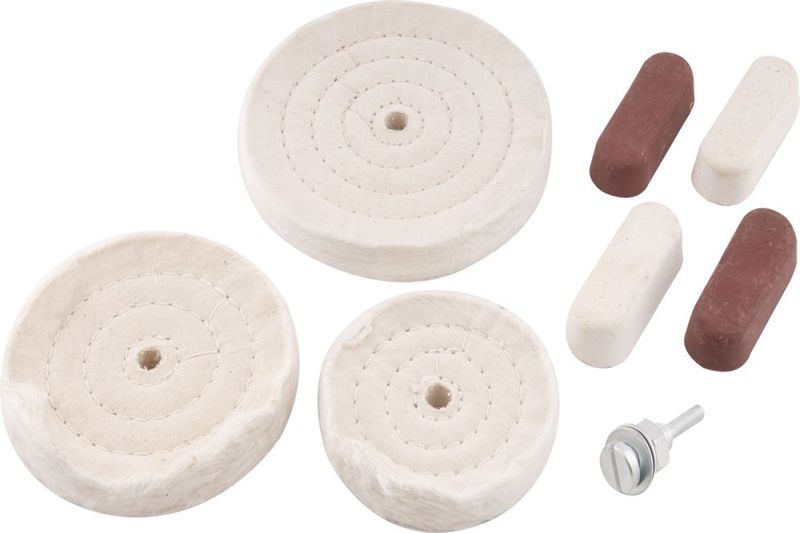 Conteúdo da embalagem1 Jogo de rodas de pano, composto por: 1 roda de 100 mm, 1 roda de 125 mm e 1 roda de 150 mm de diâmetro, 1 haste adaptadora, 2 pastas para polimento branca e 2 pastas para polimento marromAplicações e dicas de usoUtilizado em furadeiras para lixamentos e acabamentos. Pasta branca: para um acabamento de alta qualidade nas ligas de alumínio, cromo e inox. Pasta marrom: indicada para cobre, latão, alumínio e aço.Destaques e diferenciaisFácil utilização e versatilidade de aplicações DETALHES TÉCNICOS Diâmetro externo das rodas: 1 Roda de 100 mm, 1 roda de 125 mm e 1 roda de 150 mm Diâmetro da haste adaptadora: 6,35 mm Rotação: 4500 rpm