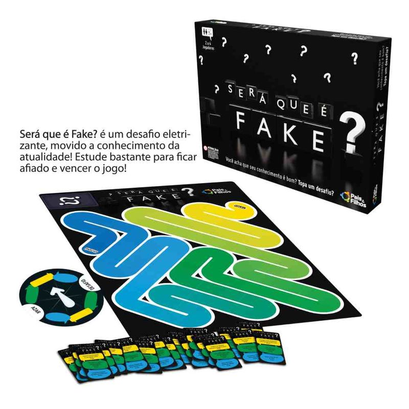 Jogo Será Que É Fake? - Pais e Filhos Você acha que seu conhecimento é bom? Topa um desafio? Será que é fake? O jogo é um desafio eletrizante, movido a conhecimento da atualidade. Estude muito, fique por dentro de tudo que acontece e fique afiado no jogo. Chame seus amigos e se divirta muito! Estimule a imaginação de seus filhos, e transforme a hora de brincar em uma verdadeira experiência com os brinquedos da Pais e Filhos. Idade: 7 anos+ Particpantes: 2 a 4 Contém: 167 cartas, 1 tabuleiro, 4 pinos e 1 roleta Fotos ilustrativas as cores e modelos podem sofrer alterações sem aviso prévio