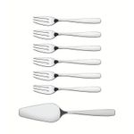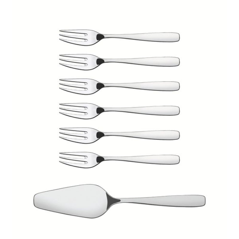 Jogo Torta Tramontina Amazonas Aço Inox 7 Peças Tramontina - A beleza e o bom gosto das suas sobremesas estão garantidos com o Jogo para Torta Tramontina em Aço Inox 7 Peças da Linha Cosmos. Com 7 peças cheias de estilo, servir suas receitas doces e tortas deliciosas vai ficar muito mais gostoso! São utensílios produzidos em aço inox com um charmoso acabamento em brilho. Os garfos com dentes polidos na parte interna, com formato apropriado para a boca e bordas arredondadas proporcionam maior conforto no uso. Características Gerais do Produto: Garantia: • 90 dias de garantia legal para defeitos de fabricação