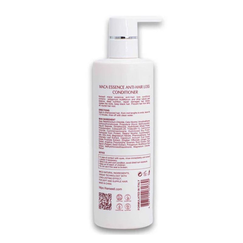 Karseell Maca Power Anti Hair Loss - Condicionador 500ml O Condicionador Karseell Maca Power Anti Hair Loss foi desenvolvido para fortalecer os fios e reduzir a queda capilar, proporcionando cabelos mais saudáveis e resistentes. Enriquecido com extrato de Maca Peruana, um poderoso ativo natural conhecido por estimular o crescimento capilar e prevenir a quebra, esse condicionador nutre profundamente, melhora a densidade dos fios e restaura a vitalidade do cabelo. Características: Marca: Karseell Linha: Maca Power Anti Hair Loss Categoria: Condicionador fortalecedor Versão: 500ml Benefícios: Redução da queda, fortalecimento dos fios, nutrição intensa e cabelos mais encorpados Ingredientes Principais: Maca Peruana: Estimula o crescimento capilar e fortalece os fios Extratos botânicos: Nutrem o couro cabeludo e melhoram a resistência capilar Modo de Aplicação: Após lavar os cabelos com o shampoo da mesma linha, aplique o Condicionador Karseell Maca Power Anti Hair Loss no comprimento e pontas. Deixe agir por alguns minutos e enxágue completamente. Para melhores resultados, utilize toda a linha Maca Power Anti Hair Loss. Benefícios do Produto: Fortalece e reduz a queda capilar Estimula o crescimento saudável dos fios Nutre profundamente sem pesar Restaura a vitalidade e densidade capilar Indicado para cabelos frágeis e com tendência à queda O Condicionador Karseell Maca Power Anti Hair Loss é a escolha ideal para quem deseja fios mais fortes, resistentes e cheios de vida. Sua fórmula enriquecida com Maca Peruana ajuda a prevenir a queda e promove um crescimento saudável, deixando os cabelos nutridos e revitalizados.