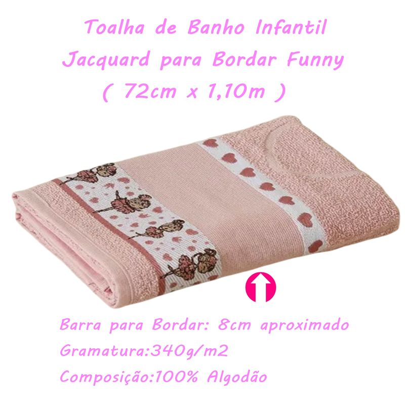 Toalha de Banho Funny: Alegria e Conforto para seu Dia a Dia,a Toalha de Banho Funny da LMPeter é a escolha perfeita para quem valoriza qualidade e bom humor em um único produto. Com um design divertido e cores vibrantes deixando o momento do banho divertido.DesignA Toalha de Banho Funny da LMPeter é a escolha perfeita para quem valoriza qualidade e bom humor em um único produto.Com um design divertido e cores vibrantes deixando o momento do banho divertido.ConfortoSeu tamanho é ideal para envolver seu filhote em um abraço acolhedor após aquele momento delicioso do banho. Proporcione conforto e diversão ao cuidar do seu pequeno com a Toalha de Banho Funny da LMPeter.QualidadeFeita com um tecido macio e altamente absorvente, a Toalha de Banho Funny garante um toque suave na pele e uma secagem eficiente após o banho.Kit ( 2 ) Toalha de Banho KazzaVip Infantil 100% Algodão Jacquard Barra para Bordar Funny RosaTodas as informações divulgadas são de responsabilidade do fabricante/fornecedor.Marca: LMpeterClassificação: BanhoTecido: FelpudoComposição (Fios): 100% Algodão - Exceto Efeito DecorativoGramatura: 340g/m2Conteúdo e Medidas: Toalha Banho Funny Jacquard Barra para Bordar - 02 Peça02 Toalha de Banho 100% Algodão Jacquard Barra para Bordar Funny (72cm x 110m)?Barra para Bordar: 8cm aproximadoProduto Licenciado por LMpeterColeção / Sortimento: Linha Funny?Cor: RosaFabricante: LMpeterReferencia: 1206Código de Barra: 7898432800786Garantia(Fabricante): Contra Defeito de FabricaçãoImagens Meramente IlustrativasINFORMAÇÕES IMPORTANTES: Item composto apenas por 02 Toalha de Banho, os demais itens são meramente decorativos e NÃO fazem parte do conteúdo da embalagem.Aviso : - Todas as medidas são valores aproximados e podem sofrer alguma variação.- As cores podem sofrer uma pequena variação, dependendo do lote do produto e das configurações do seu computador.