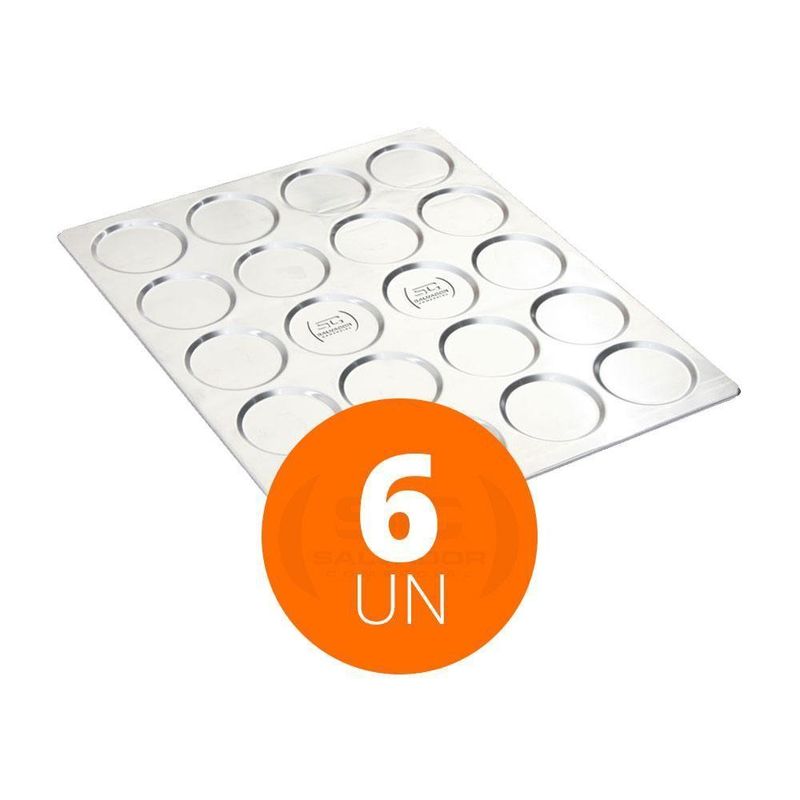 Kit - 6 Assadeiras Pão De Hamburguer 20 Cavidades Alumínio 58x70 Aph20 - ImecaOBS: Veja na descrição os itens que acompanham o jogo.COMPONENTES DO KIT:6 Assadeira Forma Pão Hamburguer Alumínio AFH20 - ImecaAssadeira Forma Pão Hamburguer Alumínio AFH20 - Imeca- Produto perfeito para você que gosta produzir pães Hamburguer de altíssima qualidade.- Produto de alta durabilidade, leve e versátil, possibilitando o acondicionamento em qualquer lugar.- Estrutura reforçada com marco em aço carbono (ferro);- 20 cavidades diâmetro 11cm x 0,5 Alt.- Forma /assadeira em alumínio- Espessura 0,80cm;- Tipo: cavidade- Marca: Imeca- Peso aproximado: 0,4 kg- Peso da embalagem: 0,6 kg- Medida Externa 0,80cm A 58cm L x 70cm P Cor: Prata | Utensílio para Preparação: Conjunto de Assadeiras | Produto: Kit de Assadeiras