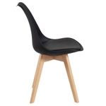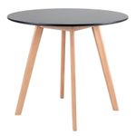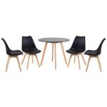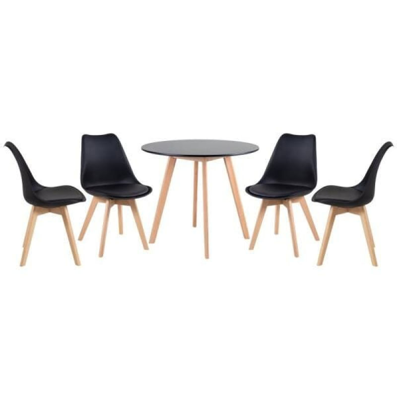 Cadeira Leda: Material do encosto: Polipropileno - Material do assento: Couro PU - Material dos pés: Madeira natural - Altura do encosto: 82 cm - Altura do assento: 44 cm - Largura do assento: 48 cm - Profundidade do assento: 43 cm - Distância entre os pés: 42 cm - Peso suportado: 130 kg. Mesa redonda Leda: Material do tampo: MDF laqueado (laca fosca) - Material da base: Madeira natural - Altura: 70 cm - Diâmetro do tampo: 90 cm - Garantia: 3 meses.