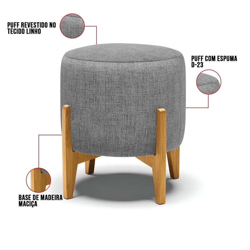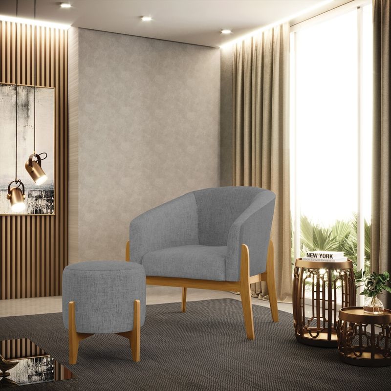Com o Kit 01 Poltrona e 01 Puff Stella você vai agregar o estilo que você deseja dar à sua casa. Começando pela poltrona, é uma peça com um design incrível, super macia e resistente, com um conforto único, principalmente pela altura do assento e encosto, com estrutura em madeira de eucalipto proveniente de reflorestamento, ela também vem com chapas de MDF, base em madeira castanho excelente para proporcionar muito mais conforto. Composta por espuma mais densa D-23 no seu encosto e no assento, tornando o móvel super resistente, é revestida em Tecido Linho no tom Grafite, que contribui muito no conforto e no seu bem estar, além de ser super fácil de limpar. E não menos importante temos o Puff Stella para completar esse kit, produzido com materiais de qualidade ímpar, conta com revestimento em tecido Linho, com espuma com D-23 e base em madeira maciça. Esse kit vale o investimento, por trazer a vantagem de poder se adaptar às suas necessidades do momento, seja para acomodar suas visitas ou usá-lo como peça decorativa apenas. Ta esperando o que para escolher o seu Kit! Dimensões da Poltrona: Altura total: 81 cm Largura total: 85 cm Profundidade total: 60 cm Altura do encosto: 40 cm Largura do assento: 45 cm Profundidade do assento: 45 cm Altura do chão ao assento: 45 cm Espessura do assento: 15 cm Tamanho dos pés: 52 cm Altura do chão ao braço: 70 cm Altura interna do braço: 28 cm Espessura do braço: 7 cm Peso: 21 kg Dimensões Puff: Altura total: 45 cm Largura total: 42 cm Profundidade total: 42 cm Altura do chão ao assento: 45 cm Espessura do assento: 31 cm Tamanho dos pés: 25 cm Peso: 12 kg Especificações do Produto Estrutura: Madeira Eucalipto Espuma: D-23 Tecido: Linho Tipo de pés: Base de Madeira Castanho Peso suportado: Até 120 Kg Garantia: 90 dias contra defeito de fabricação Montagem: O produto vai montado, apenas parafusar a base Instruções de limpeza: Utilizar um pano limpo e levemente úmido Você irá receber: 03 Volumes com 01 Poltrona, 01 Base de Madeira e 01 Puff Observações Relevantes - Todos os produtos vão embalados com total segurança; - As cores dos produtos podem sofrer alterações dependendo do seu monitor; - Para futuras compras, não garantimos a mesma tonalidade de cor, pois existe variação a cada lote do fabricante do tecido; - As imagens são meramente ilustrativas, não acompanham objetos de decoração e eletros; - Confira as dimensões do produto no momento da compra e certifique-se de que passará normalmente por escadas, elevadores, portas e corredores; - Importante: Por se tratar de estofado as medidas podem ter uma pequena variação em até 3 cm; - Não nos responsabilizamos no ato da entrega por montagens, desmontagens, instalações de produtos; - Não nos responsabilizamos no ato da entrega por subir escadas, elevadores, nem utilização de guinchos ou equipamentos similares para acesso a pisos superiores em apartamentos; - A entrega do produto é realizada em todo território nacional, até onde as rodovias alcançam, entregas fluviais ou aéreas devem ser cotadas a parte; - Observando as orientações acima, evita-se futuros desagrados ou imprevistos com a entrega do produto. Havendo despesas adicionais, serão de responsabilidade do cliente;