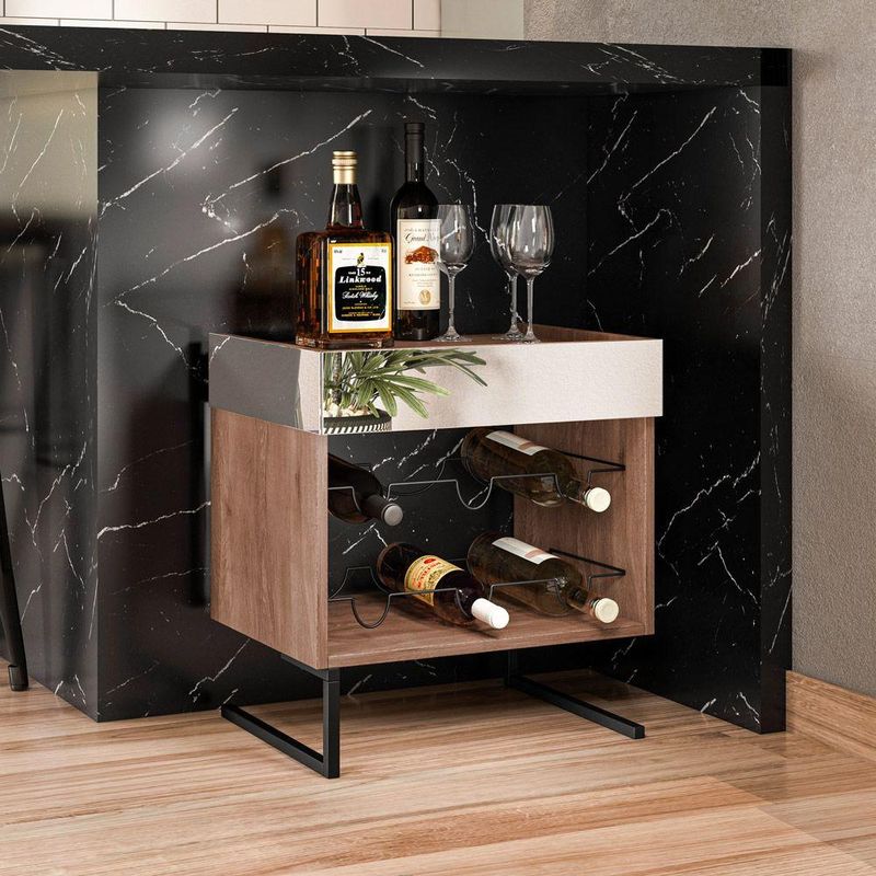 Kit 02 Adegas Industrial Com Espelho Boreal Demolição - D'rossiApresentamos o Kit 02 Adegas Boreal, que com três espelhos e espaço para seis garrafas entrega a você um alto nível de beleza estética e qualidade para decorar o seu ambiente. Com sua estrutura em MDF de 15mm e com seu revestimento BP oferecemos um produto mais resistente à umidade, riscos, mofo e bactéria, e este super material ainda viabiliza valores mais naturais em seu visual que se aproxima aos desenhos de madeiras naturais, pés estruturais em metal antioxidantes com pintura eletroestática. E aqui está um produto que na sua criação foi pensado em você, no moderno, no atual, no conceito industrial de ser, na visão de que não se pode privar a criatividade de quem quer fazer um belo ambiente. Dimensões Altura: 52 cm Largura: 49 cm Profundidade: 38 cm Peso: 10 kg Especificações do Produto Estrutura: MDP 15 mm; Acabamento: Pintura BP; Estrutura da Base: Metal antioxidante com pintura eletroestática; Cor: Demolição; Suporte Metálico: Espaço para seis garrafas; Montagem: O produto vai desmontado, recomendamos a contratação de um profissional; Instruções de Limpeza: Utilizar um pano limpo e levemente úmido Você irá receber: 04 volumes com 02 produtos; Observações Relevantes - Todos os produtos vão embalados com total segurança; - As cores dos produtos podem sofrer alterações dependendo do seu monitor; - As imagens são meramente ilustrativas, não acompanham objetos de decoração e eletros; - Confira as dimensões do produto no momento da compra e certifique-se de que passará normalmente por escadas, elevadores, portas e corredores. - Não nos responsabilizamos no ato da entrega por montagens, desmontagens, instalações de produtos, nem utilização de guinchos ou equipamentos similares para acesso a pisos superiores em apartamentos. - Observando as orientações acima, evita-se futuros desagrados ou imprevistos com a entrega do produto. Havendo despesas adicionais, serão de responsabilidade do cliente.